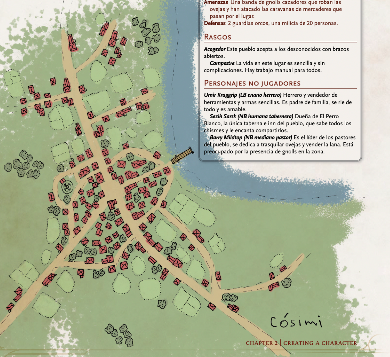 - Ejemplo de pueblo con NPCs, problemas locales y elementos narrativos listos para jugar